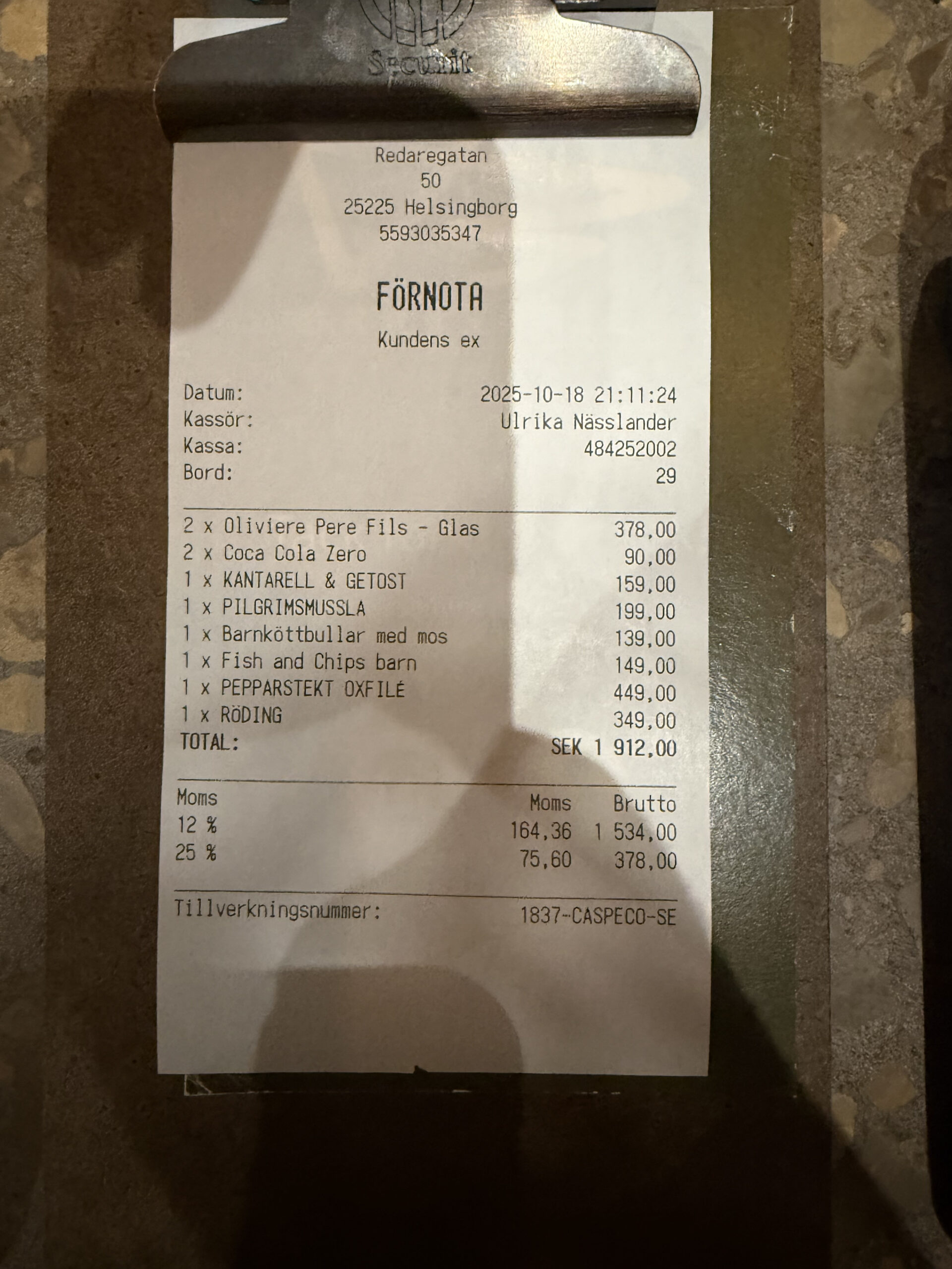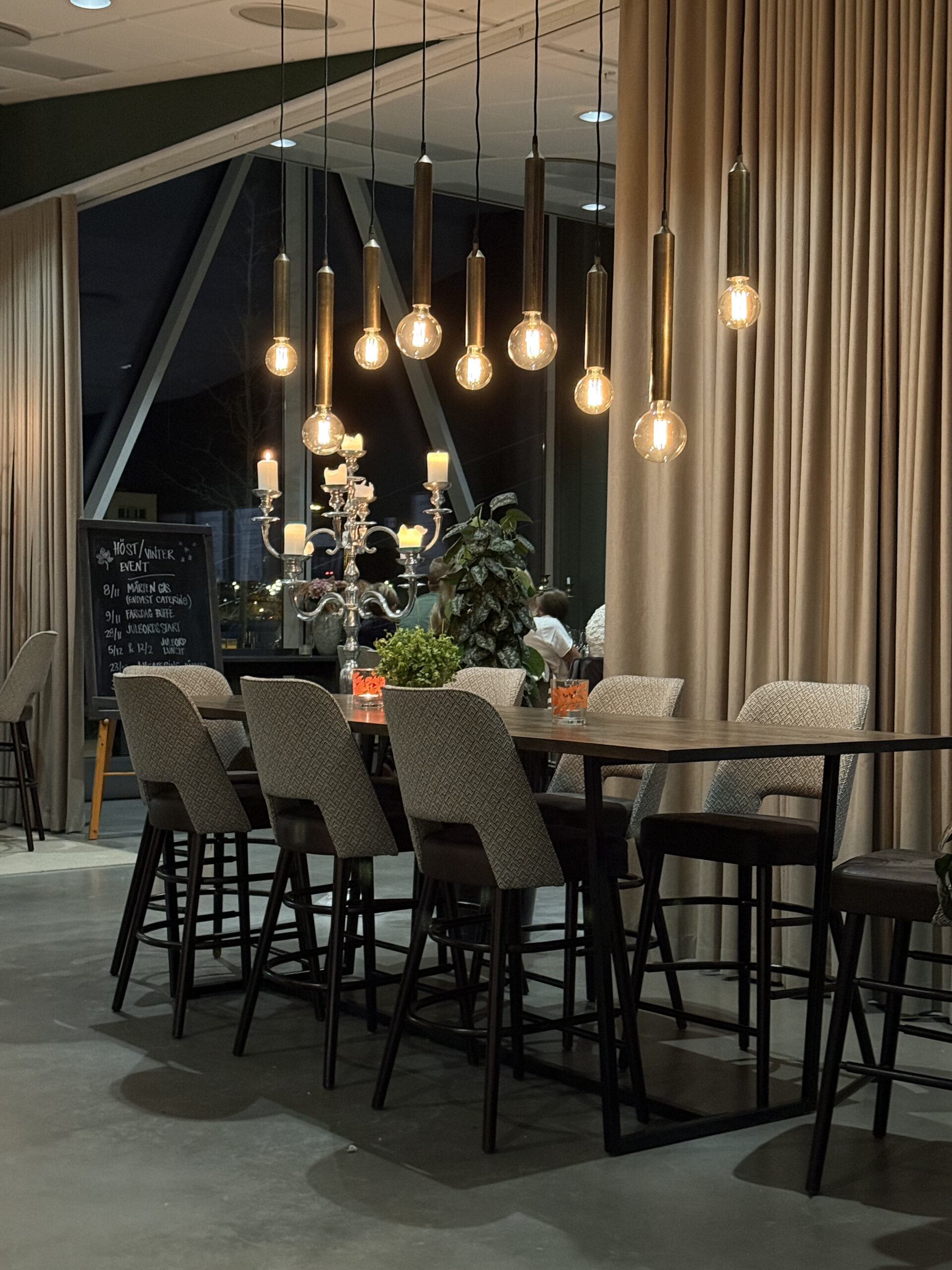Menuen byder på klassikere som kalvköttbullar med potatismos og gräddsås, burger med bacon og cheddar, moules frites med hvidvin og fløde samt steak tartar. Der er også snacks som parmesanpommes med aioli, vitlöksbröd med tryffelaioli og flere klassiske forretter og hovedretter.