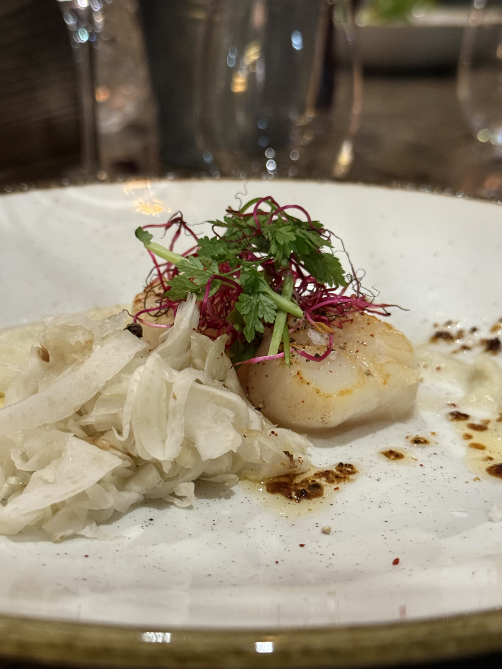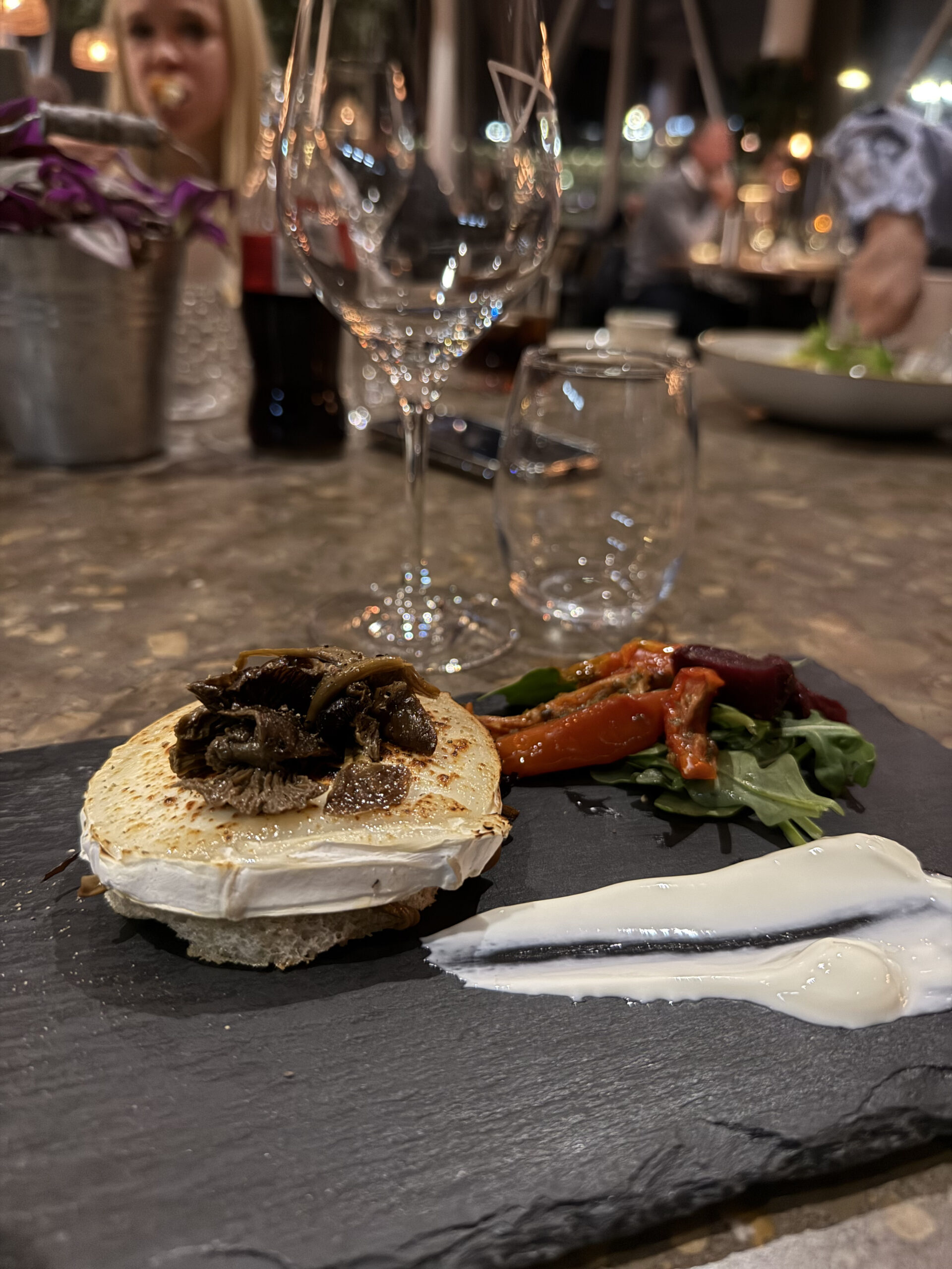 Forretter: Toast med gedeost og svampe, kammuslinger, steak tartar