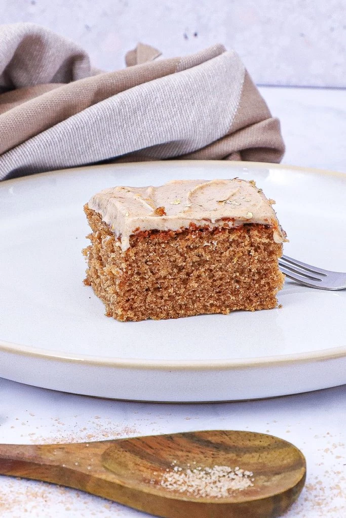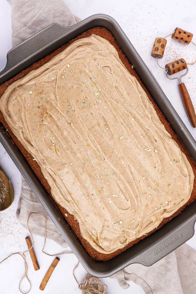 Lækker svampet kanelkage toppet med cremet frosting med appelsin og kanel, – en skøn kage der er super nem at bage.