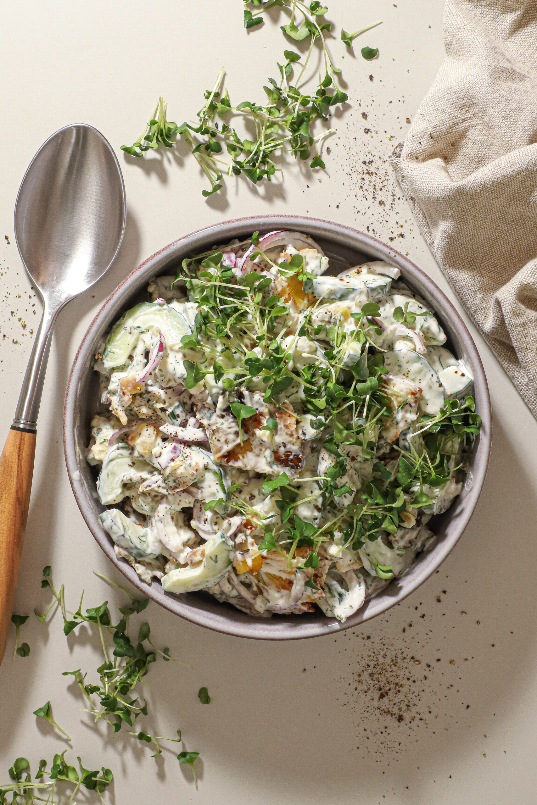 Den er super nem at lave og smager allerbedst, når den lige er lavet – men du kan sagtens lave den i forvejen og opbevare den på køl et par timer. Perfekt som tilbehør til grillmad, til en steg, eller som frokostsalat med et stykke fisk eller kød.
