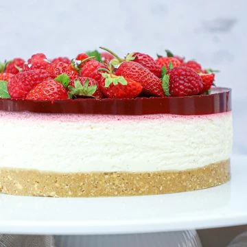 Den smukkeste cheesecake med smag af kammerjunkere, koldskål og friske solmodne røde bær, – en rigtig sommer dessert.
